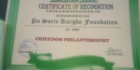 The Pa Sorie Kargbo Foundation Team are very honored and humble to receive this outstanding award from the Kalansogia Descendant Developments Association (KADDA). The Foundation will continue to focus on empowering poor working women and support school children in their desire and determination to achieve success in school. We are a very small Community Based Organization based providing services in Bumbuna, Sierra Leone.
