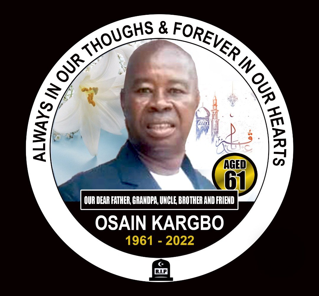 A memory of our dear Brother, Father, Husband, Uncle, and Friend- Osain Amadu Kargbo Some bring great light to the world that the light remains even after they have gone. There are no words for such an unimaginable loss. Your beautiful daughters ( Mama Iye and Zainab Kargbo), your lovely wife Mbalu, and the rest…